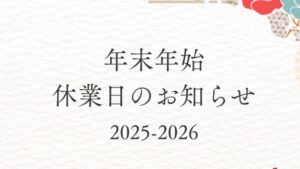 いつもお世話になり、ありがとうございます。本年(2025年)から2026年の年末年始のご案内をさせていただきます。 ご予約・お問い合わせ(電話) ご予約・お問い合わせ(ネット) カウンセリング・コンサルティングの実施 […]